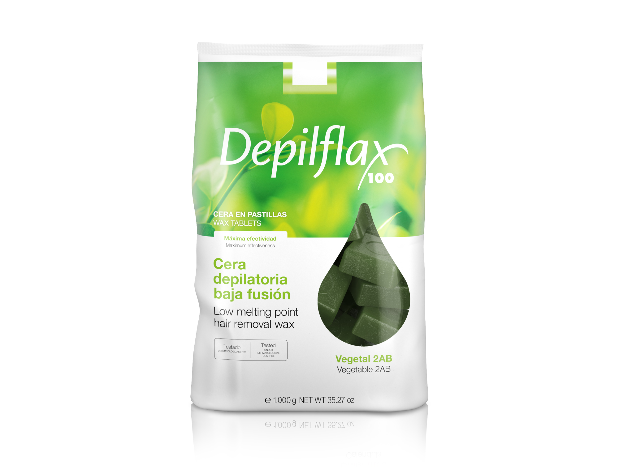 Прозрачный воск низкой температуры плавления Depilflax100 зеленый в брикетах подходит для всех типов кожи. Благодаря высокой адгезии позволяет с корнем удалять даже короткие волоски.