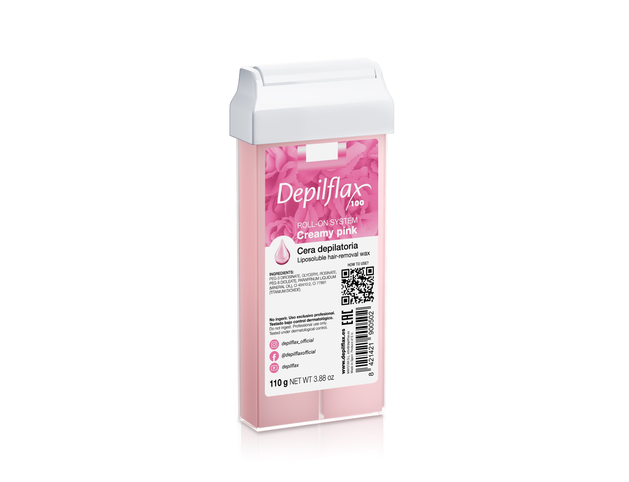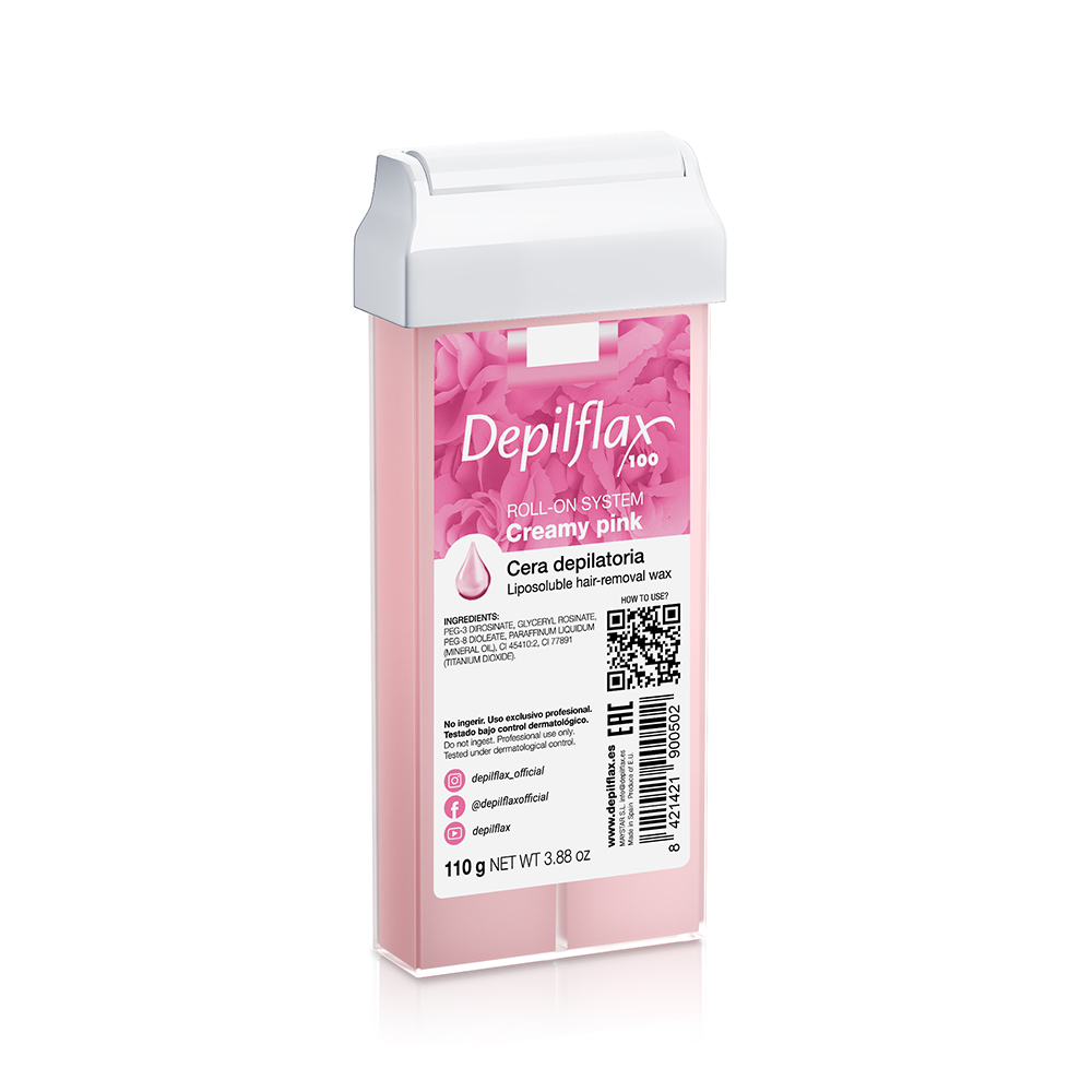 Плотный воск от бренда Depilflax100 - Розовый-сливочный в картридже. Подходит для всех видов волос и чувствительной кожи.