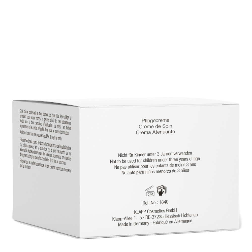 Крем для поддерживающего домашнего ухода в ходе проведения салонной пилинговой программы ASA. Основное действие - облегчение отшелушивания ороговевших частиц эпидермиса, сглаживание неровностей микрорельефа кожи, осветление пигментных пятен. Активные компоненты: комплекс кислот - гликолевая, салициловая, лимонная и молочная, пальмовое масло, масло герани, токоферол, ретинила пальмитат.