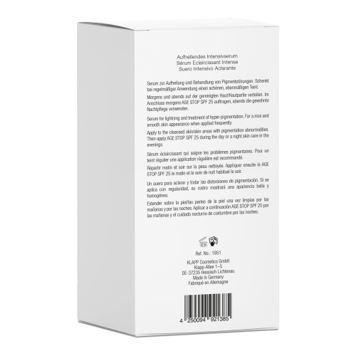Сыворотка гелеобразной консистенции для осветления пигментных пятен. Применяется локально, либо на всю поверхность кожи, общий тон которой подлежит осветлению. Нормализует выработку и распределение меланина в коже. Содержит высокотехнологичный комплекс для осветления пигментных пятен на основе экстракта настурции. Применяется в качестве сыворотки под основной крем по типу кожи.