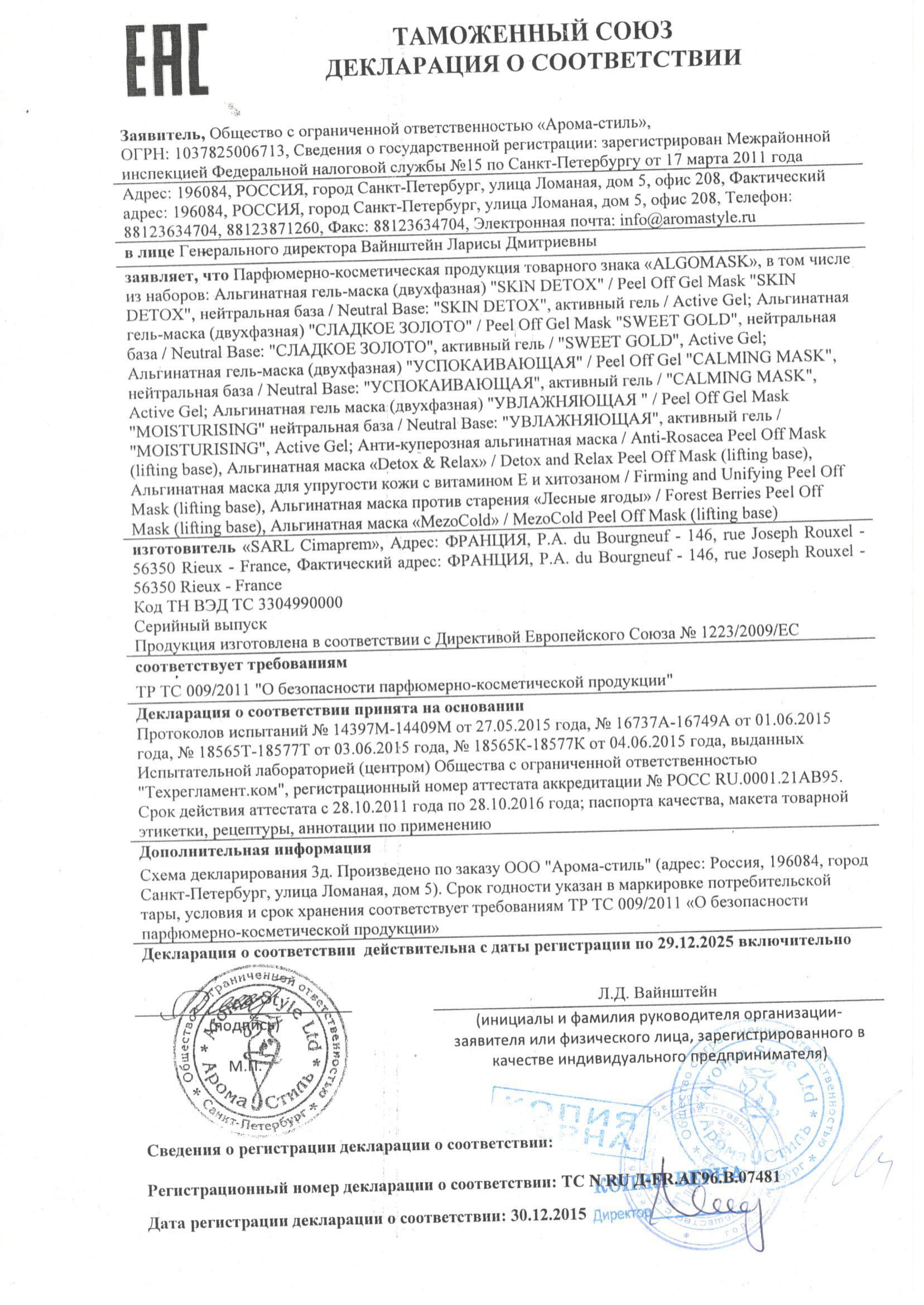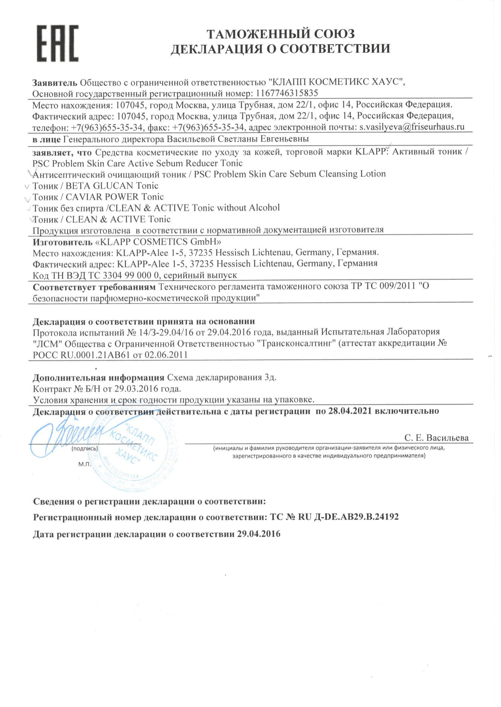 Парфюмерно-косметическая продукция, представленная в интернет-магазине cosmetica.by прошла исследования (испытания) в аккредитованных органах сертификации и испытательных лабораториях Таможенного союза и соответствует требованиям технического регламента Таможенного союза "О безопасности парфюмерно-косметической продукции" (ТР ТС 009/2011).